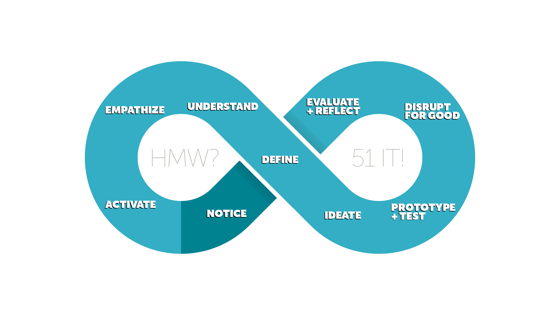Developed at Stanford University’s d.school, human centered design, also known as design thinking, upends traditional design approaches by centering the voices and experiences of end-users, making them co-creators of the opportunities and solutions generated through the process. Using human-centered design, we can uncover new ideas that allow us to disrupt for good — improving the status quo for lasting change.